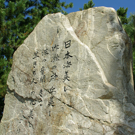 青春時代を金沢の旧制第四高等学校で過ごした小説家の井上靖は、内灘砂丘にも足を運び、「流星」「海」等の作品を残しています。 日本海美し 内灘の砂丘美し 波の音聞きて 生きる人の心美し 碑に刻まれた数行に、内灘の町民をたたえる氏の心情が表れています。 詳細はこちら 住所 石川県河北郡内灘町字宮坂に461 交通 JR金沢駅→北鉄浅野川線:約17分→内灘駅 →なだバスナディ南部ルート:約25分 →ほのぼの湯下車→徒歩:約4分 駐車場 総合公園駐車場利用(400台) Post Share Hatena Pocket RSS feedly Pin it